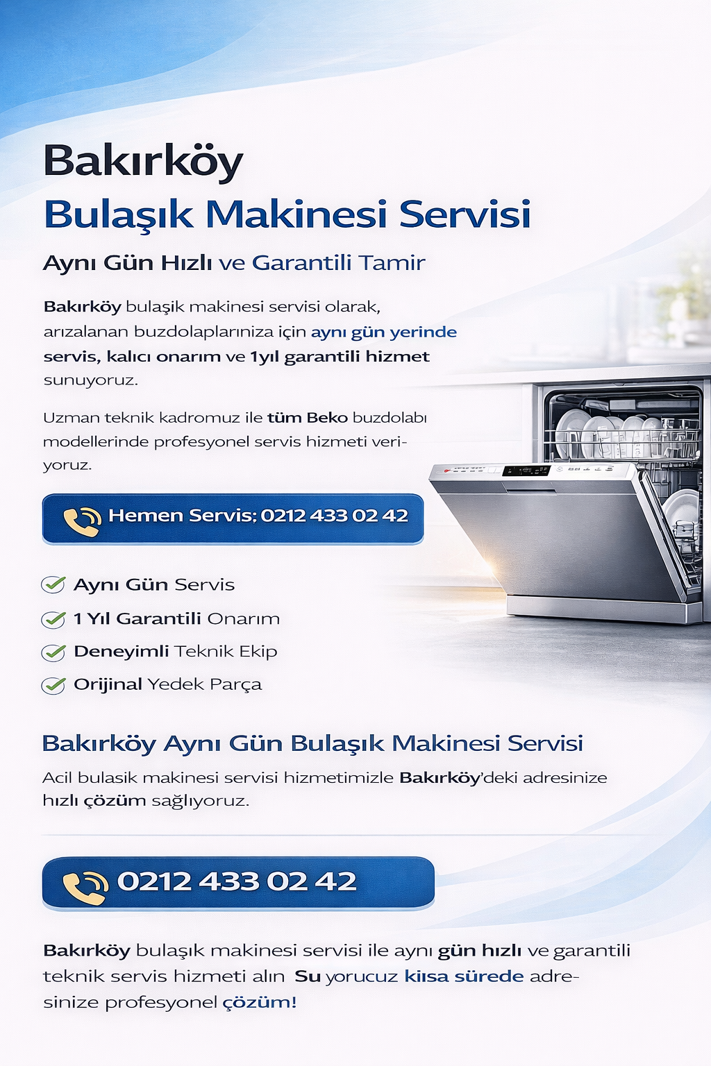 Bakırköy Bulaşık Makinesi Servisi | Aynı Gün Hızlı ve Garantili Tamir Bakırköy bulaşık makinesi servisi olarak, arızalanan cihazlarınıza aynı gün yerinde servis, kalıcı onarım ve 1 yıl garantili hizmet sunuyoruz. Günlük yaşamın vazgeçilmezlerinden olan bulaşık makinelerinde oluşan arızalara hızlı müdahale ederek zaman Devamı…