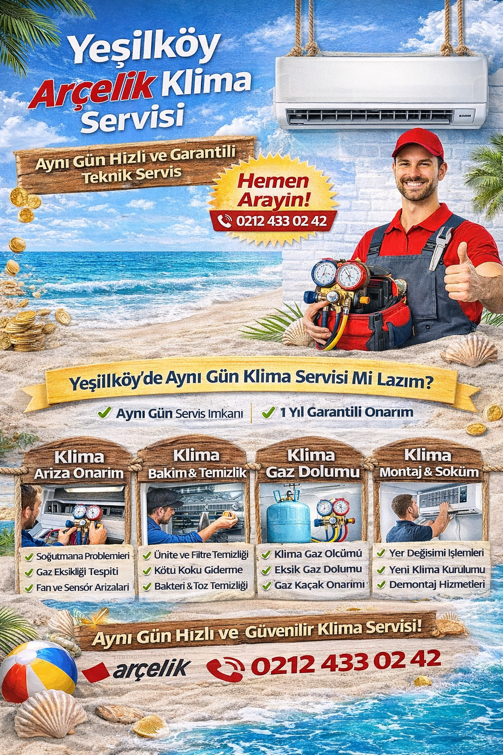 Yeşilköy Arçelik Klima Servisi | Aynı Gün Hızlı Müdahale Yeşilköy Arçelik klima servisi olarak, klima sistemlerinizde oluşan tüm arızalara hızlı, garantili ve kalıcı çözümler sunuyoruz. Özellikle yaz aylarında yaşanan klima problemlerine anında müdahale ederek yaşam konforunuzu koruyoruz. Deneyimli teknik ekibimiz sayesinde Arçelik Devamı…