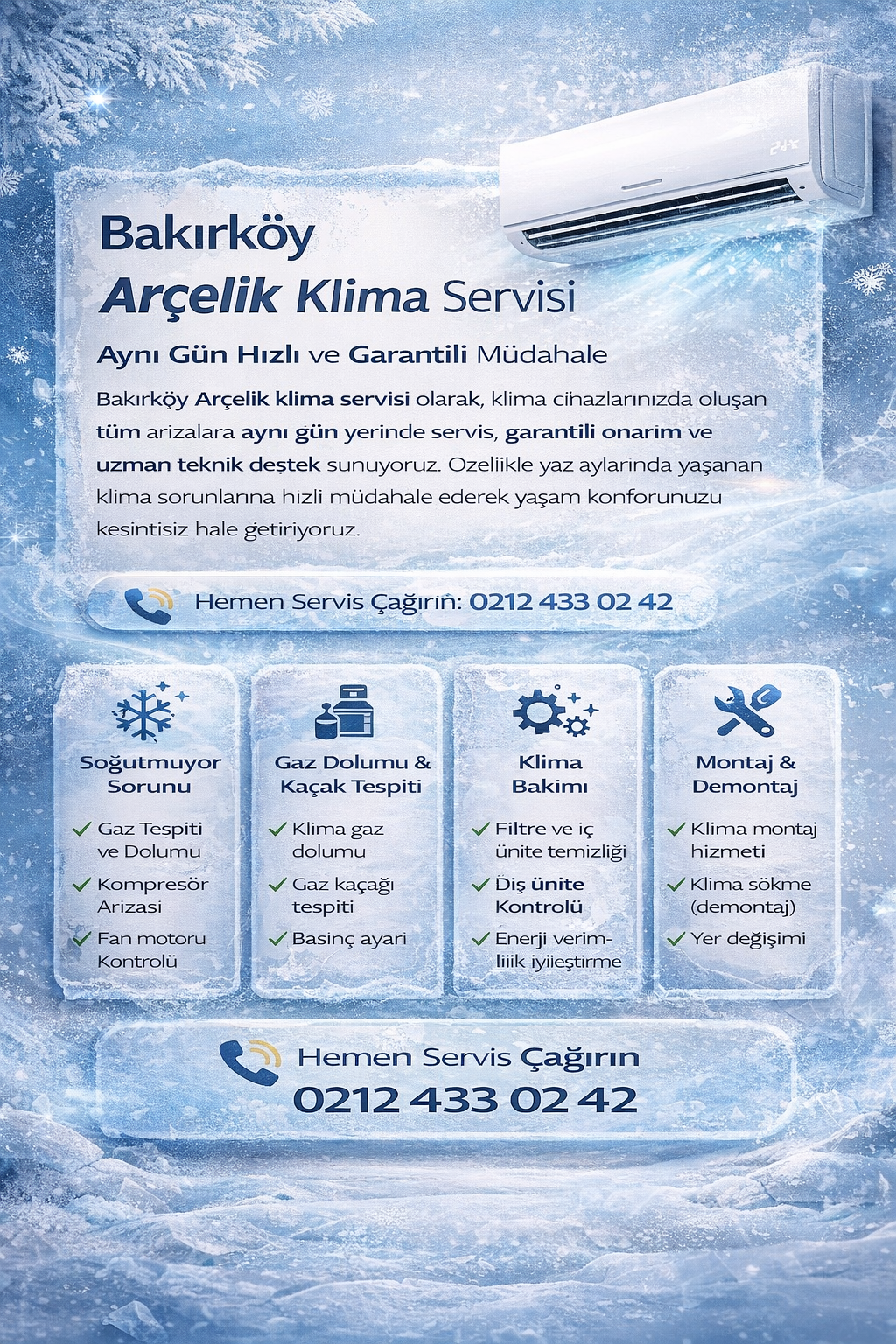 Bakırköy Arçelik Klima Servisi | Aynı Gün Hızlı ve Garantili Müdahale Bakırköy Arçelik klima servisi olarak, klima cihazlarınızda oluşan tüm arızalara aynı gün yerinde servis, garantili onarım ve uzman teknik destek sunuyoruz. Özellikle yaz aylarında yaşanan klima sorunlarına hızlı müdahale ederek yaşam Devamı…