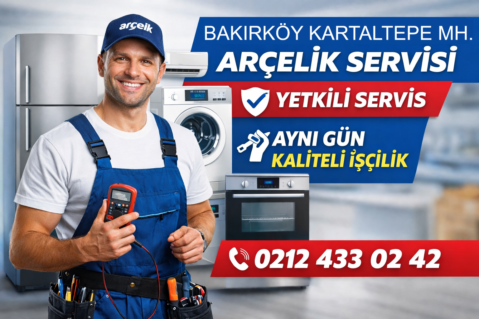 İstanbul’un Bakırköy ilçesinde bulunan Kartaltepe ve çevresinde beyaz eşya arızaları için hızlı ve güvenilir teknik servis hizmeti sunulmaktadır. Arçelik marka cihazlarınız için deneyimli teknisyenler tarafından profesyonel bakım ve onarım hizmeti verilmektedir.